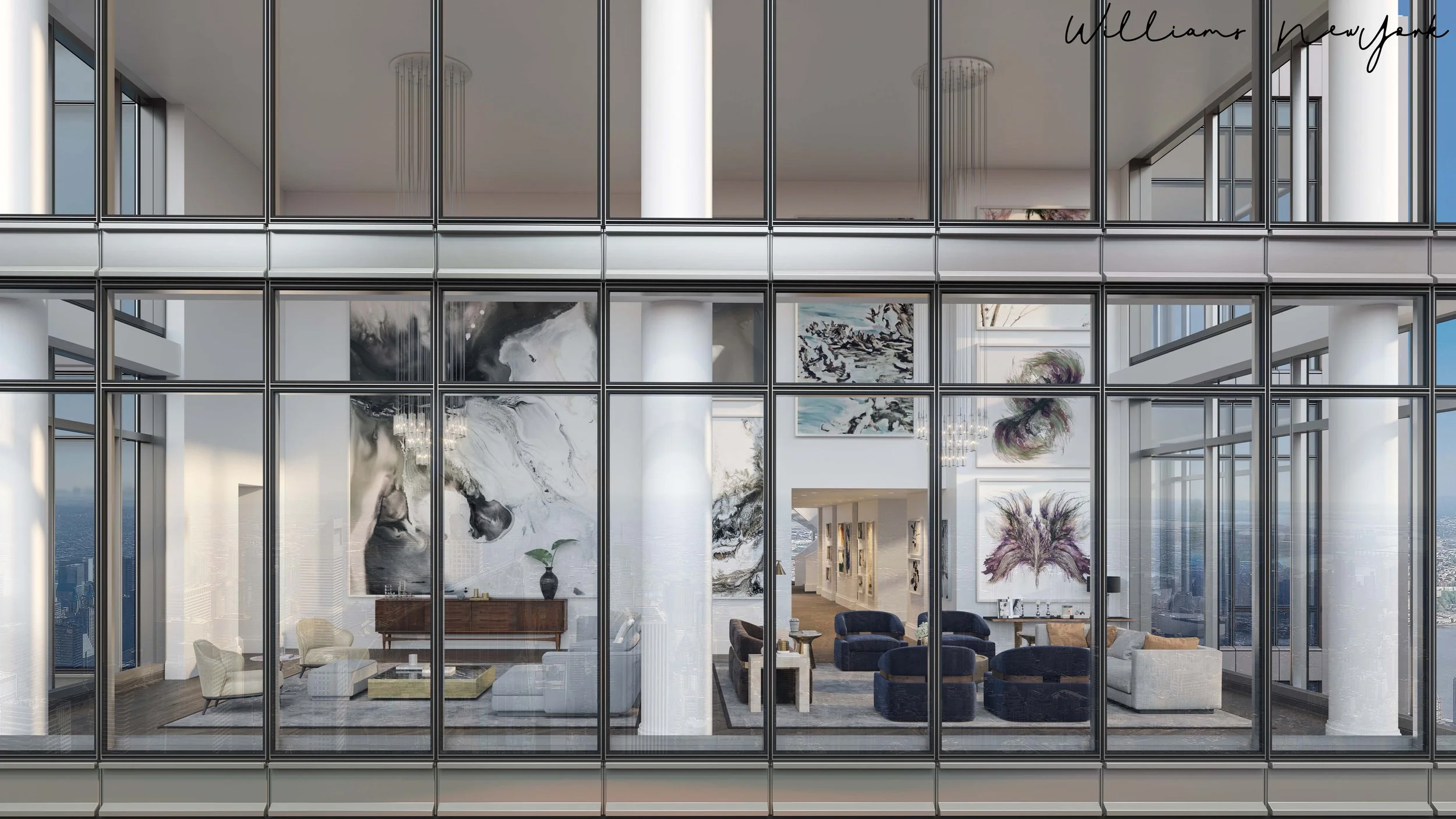 A contemporary high-rise apartment designed to engage directly with the surrounding cityscape.